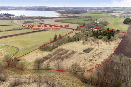 Med et enormt grundareal på 43.300 kvadratmeter, giver dette ejendomsmuligheder for dem, der ønsker landlig idyl. Ejendommen bliver udbudt til en pris på 1.395.000 DKK.