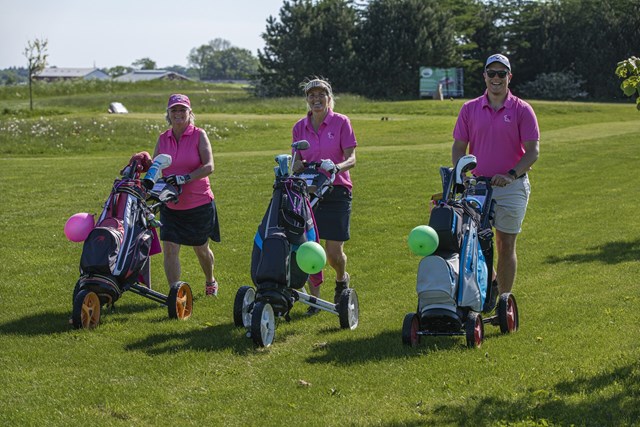 Efter en festlig indskrivning på gårdspladsen med udlevering af ballonpynt til golfvognene blev turneringen skudt i gang kl. 09.00. Vejret var skønt og sommerligt, og de pink farver var at se overalt på banen.