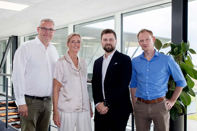 Foto: Fra venstre: Lars Harbo, Tilbudschef, Anette Storm, CEO, Jonas Bang Eriksen, Salgsdirektør, og Simon Bisgaard, Økonomichef.