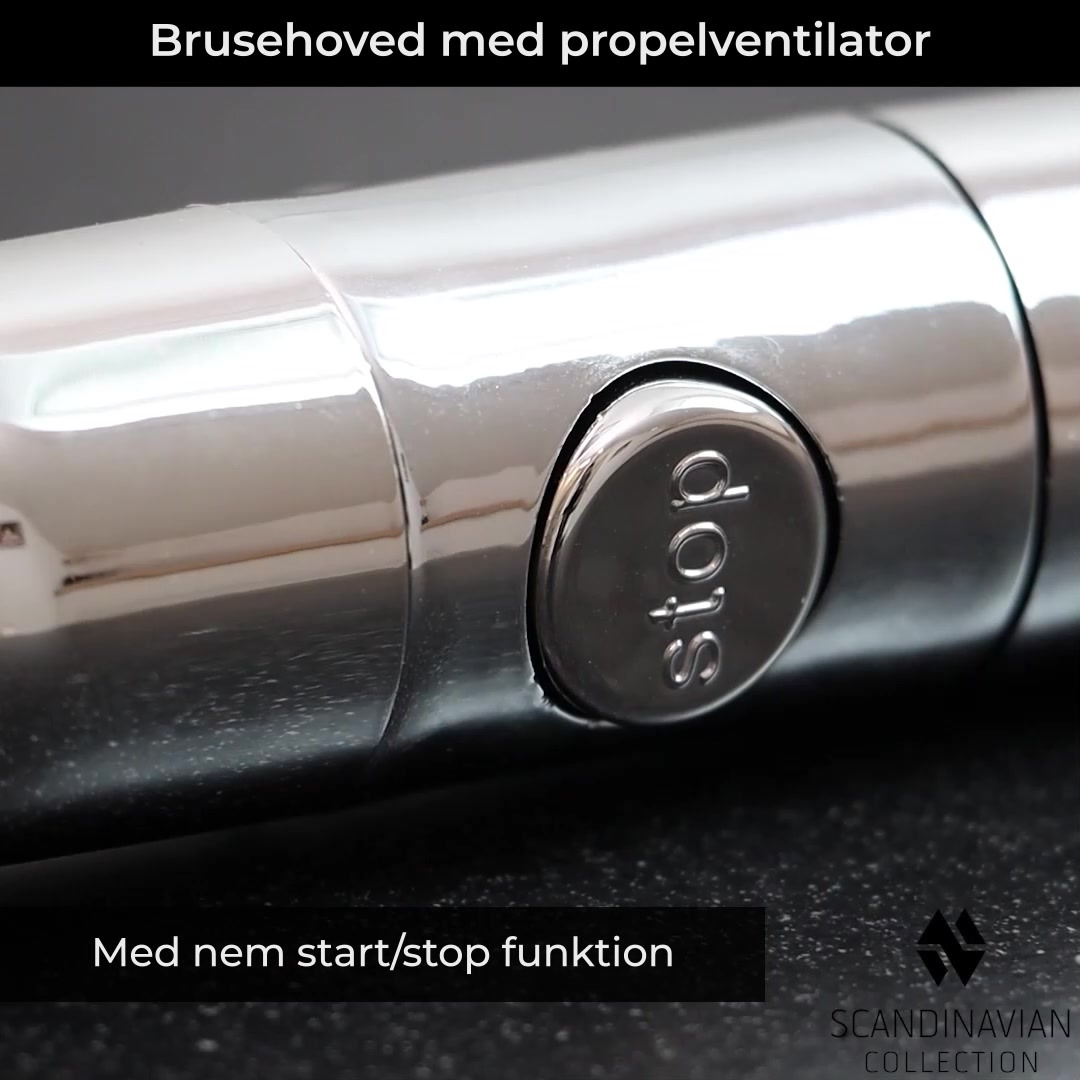 Kraftigere vandtryk: Den indbyggede propelventilator øger vandtrykket, så du får en kraftigere og mere jævn vandstrøm – perfekt til at skylle shampooen ud eller bare nyde en intens massageeffekt.
