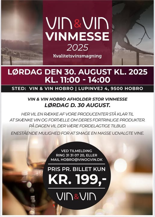 Vin & Vin Hobro er kommerciel partner med VORES Hobro og oplysningerne er hentet fra deres Facebookside. Støt lokalt og giv en tommel op på deres side.